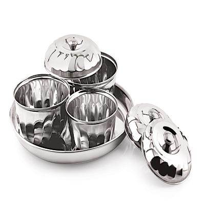 Ensemble de vaisselle en acier inoxydable écologique, bol de service avec couvercles et plateau, finition miroir pour la maison et les fêtes