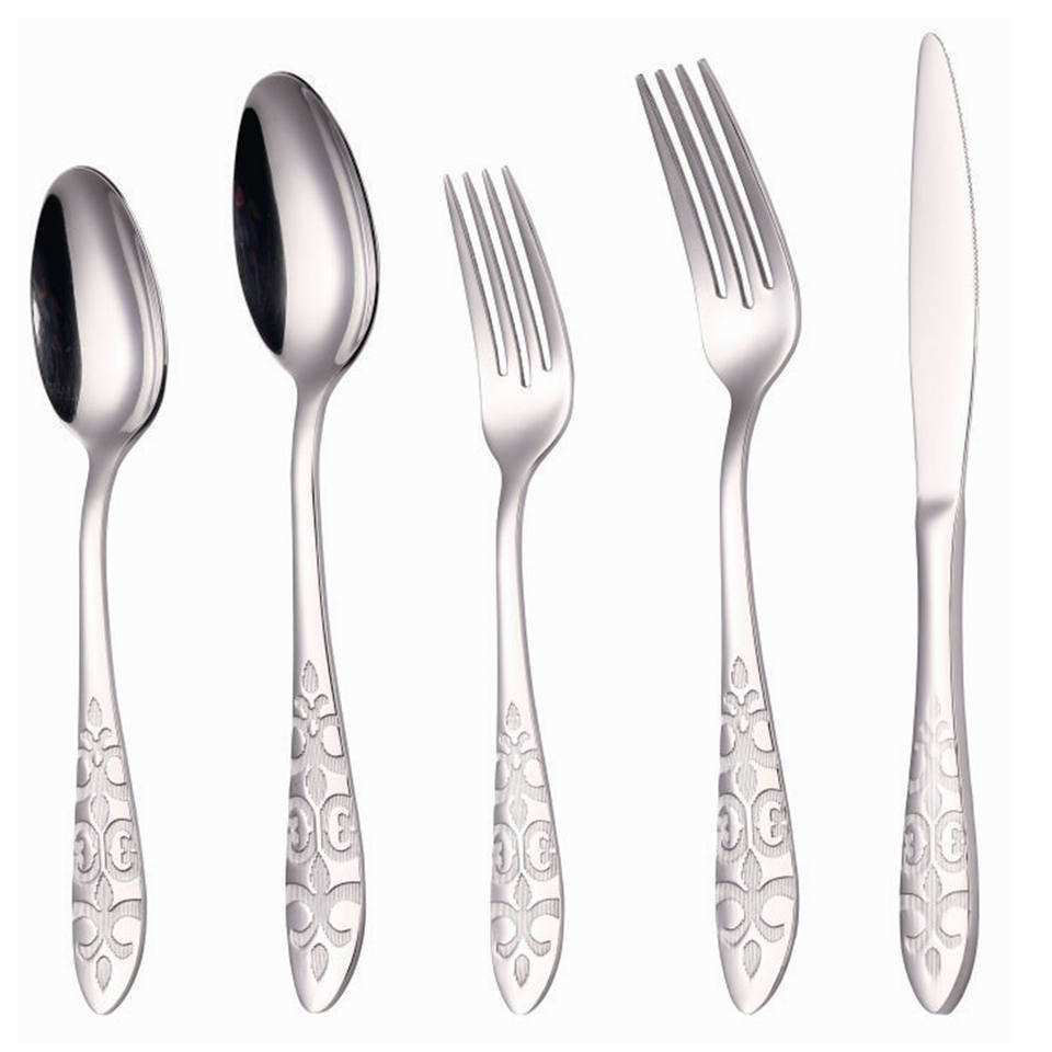 Ensemble de couverts en acier inoxydable écologique gravure couverts plaqués argent beaux ustensiles de cuisine et vaisselle plat délicieux