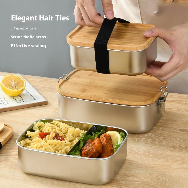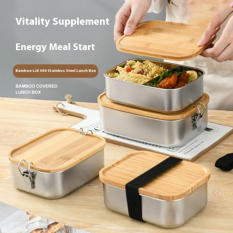 Boîte à lunch en acier inoxydable écologique avec couvercle en bambou, boîte à bento portable étanche pour le camping et les repas en plein air