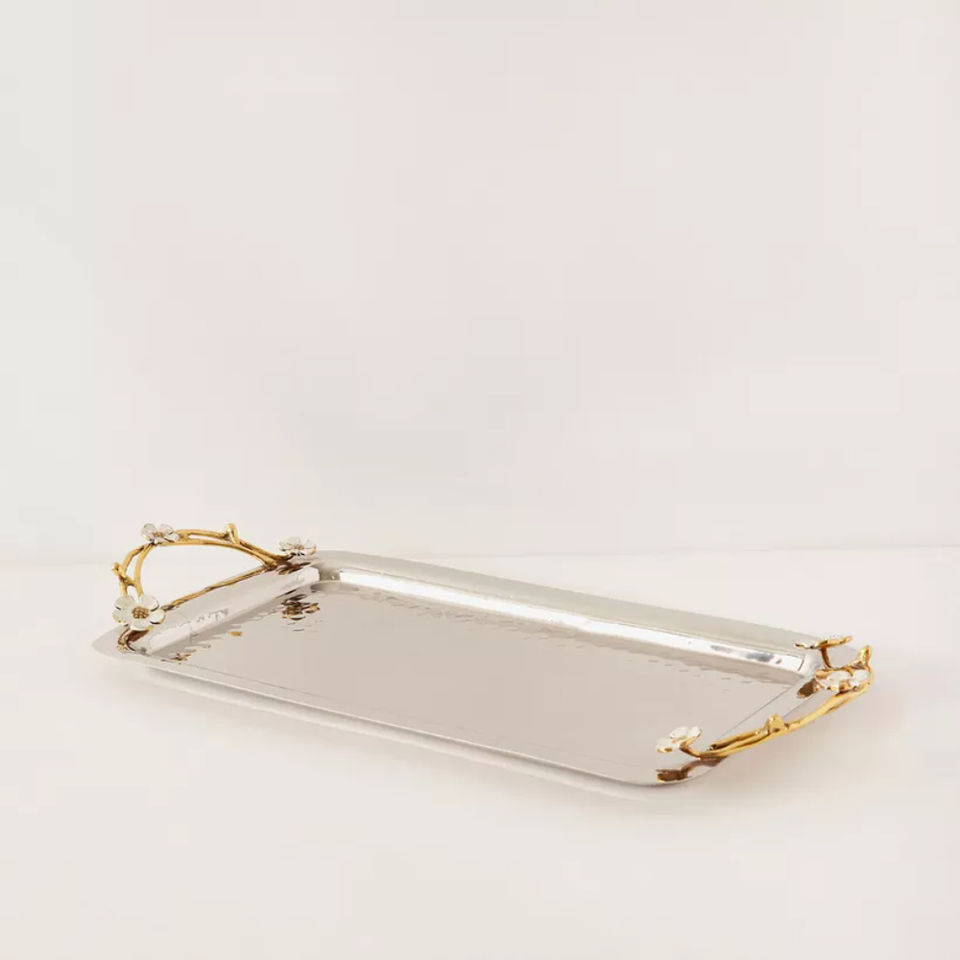 Décoration de table écologique Snacks Plateau de service Plateau en métal martelé de la plus haute qualité avec poignée florale pour fournitures d'hôtel