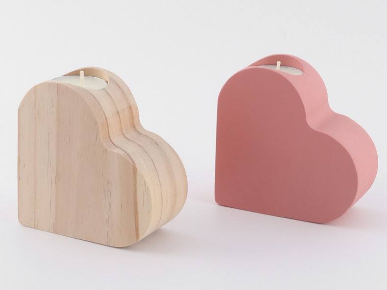 Bougeoir écologique en forme de cœur en bois pour chauffe-plat