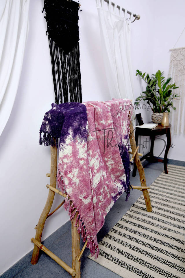 Eco-Friendly 100% Cotton Tie Dye Blanket Printed Bohemian Design Cozy and Colorful Home Decor Textile