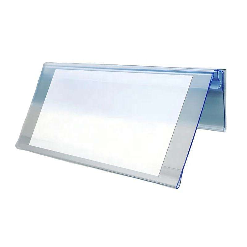 Présentoir de bureau en PVC acrylique en forme de V, écologique, pour cartes de visite et prix