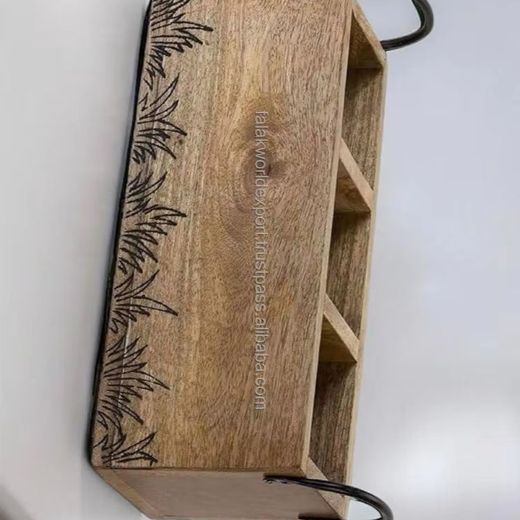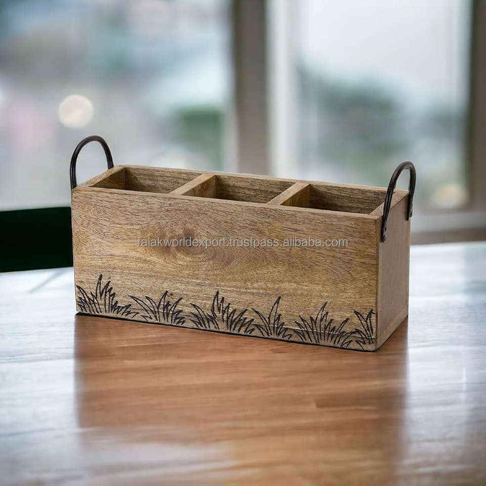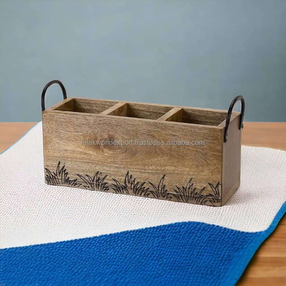 Eco-Friendly Waterproof Modern Dining Table Cutlery Napkin Holder for Kitchen Utensils Mango Wood Storage Rack for Spoons Forks