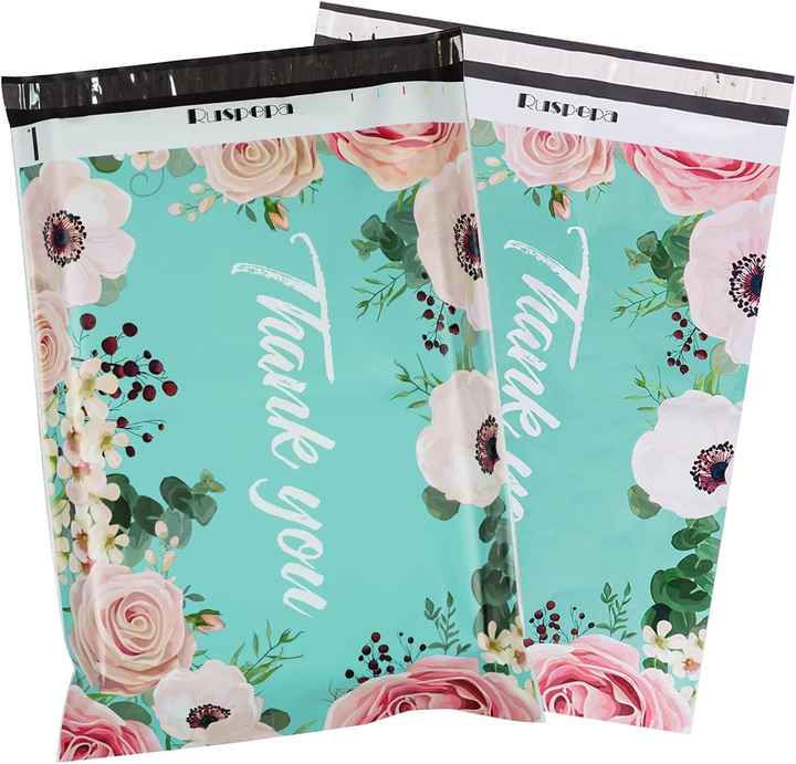 Sachets d'expédition écologiques imperméables en polyéthylène, motif fleurs entourées de bleu sarcelle, avec notes de remerciement, 3 mil, robustes, auto-adhésifs pour l'envoi postal