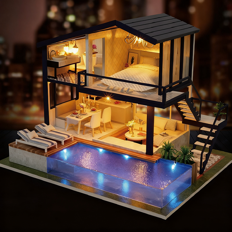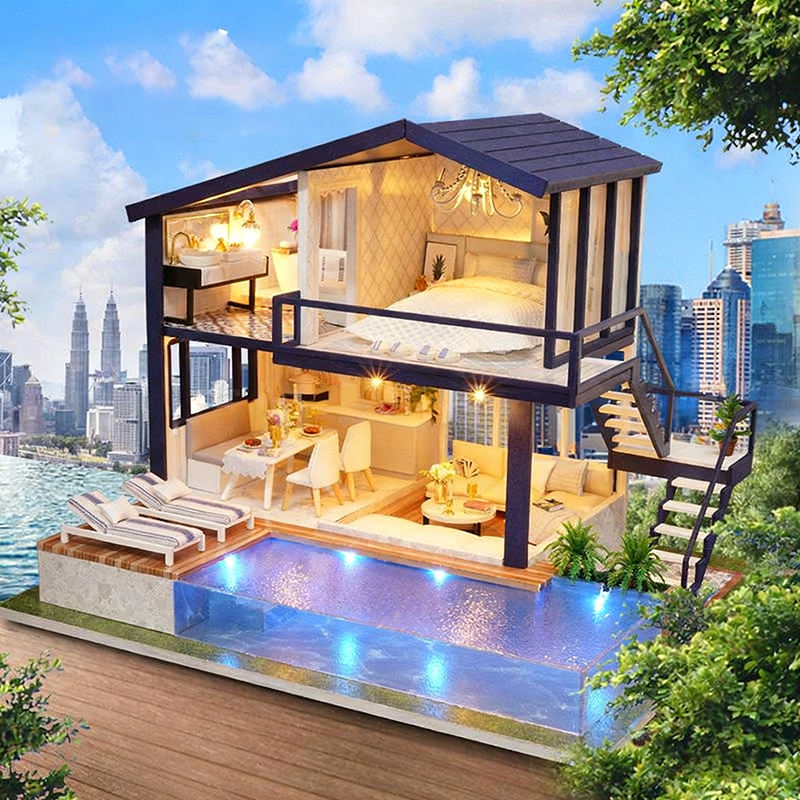 Maison modulaire miniature en bois écologique, imperméable, à construire soi-même, avec meubles, pour bureaux, appartements, villas