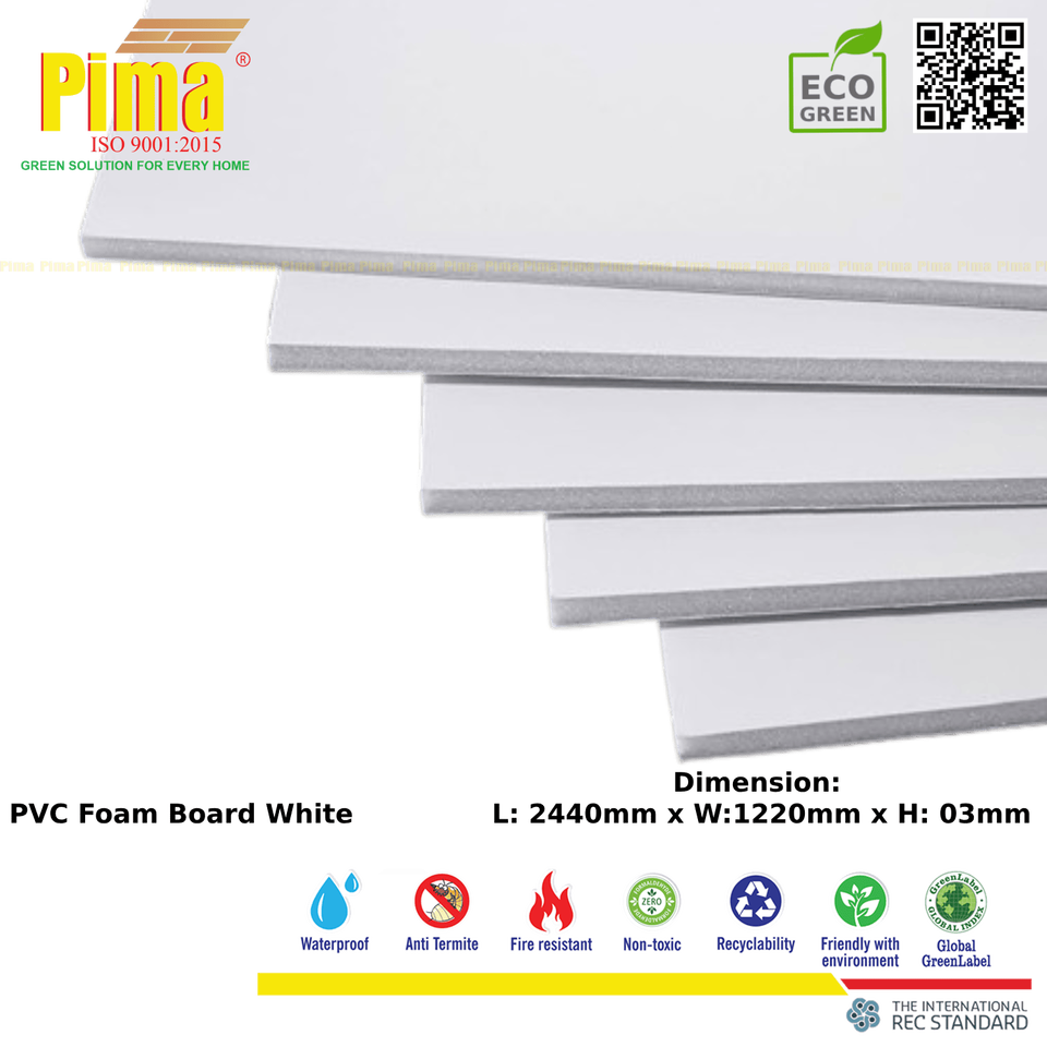 Revêtement en plastique non toxique blanc écologique de densité de la feuille 3mm de panneau de mousse de PVC WPC de la densité 0.6G/cm3 pour l'intérieur de cuisine