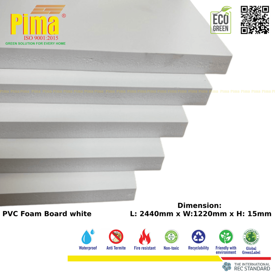 Feuille de panneau de mousse de PVC WPC blanc écologique 15mm épaisseur 0.6G/cm3 densité Surface étanche pour moulage panneaux meubles