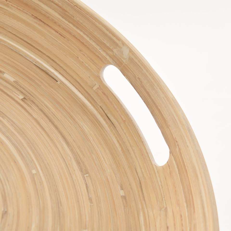 Plateau de service en bambou écologique du Vietnam, rond décoratif avec poignée, taille personnalisée, couleur et logo personnalisés, sans danger pour les aliments