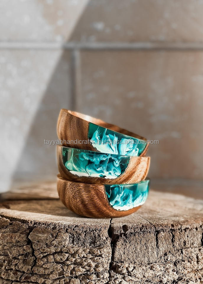 Eco-Friendly Wooden Bowl with Wood Resin Handcrafted Classic Artistry for Serving Soup