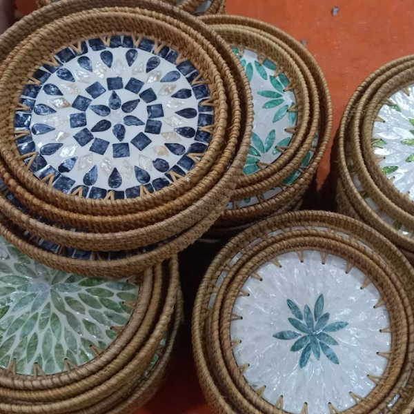Plateau en rotin tissé écologique | Plateau panier décoratif artisanal, décoration rustique
