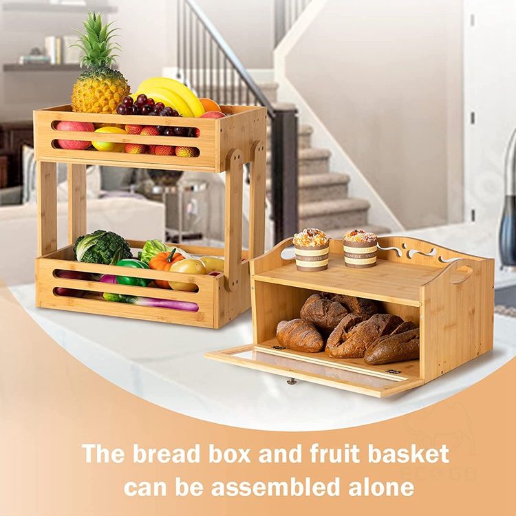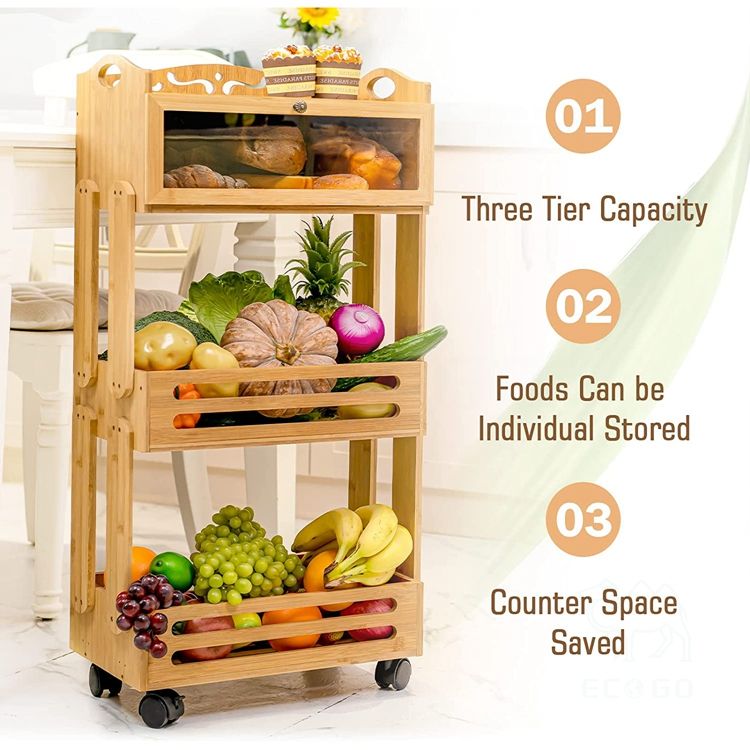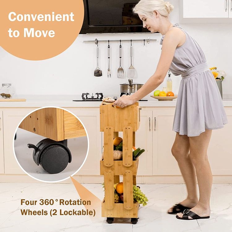Description:Bamboo Fruit Basket Stand, Potato and Onion Storage Cart