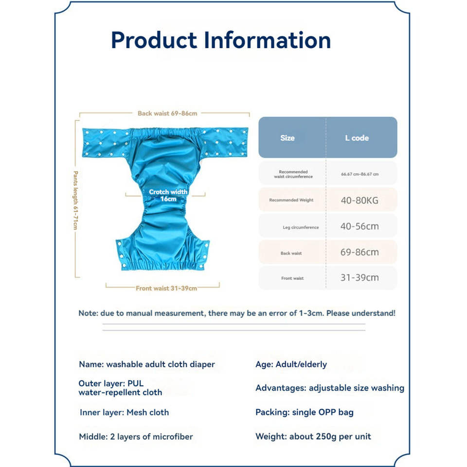 Nom du produit:Couche-culotte adulte réutilisable de tissu