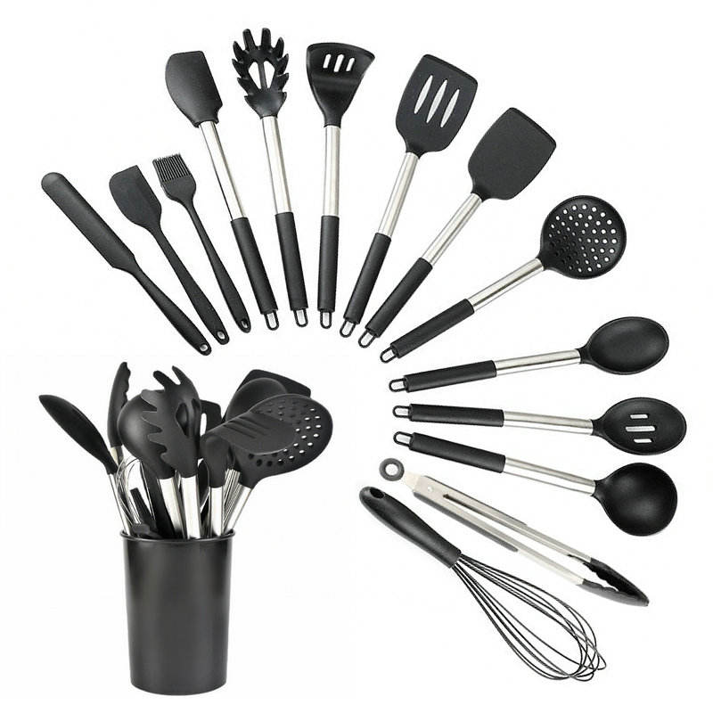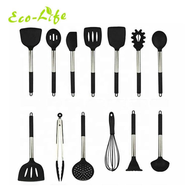 Ensemble d'ustensiles de cuisine en silicone avec manches en acier inoxydable Eco-Life, 13 pièces différentes