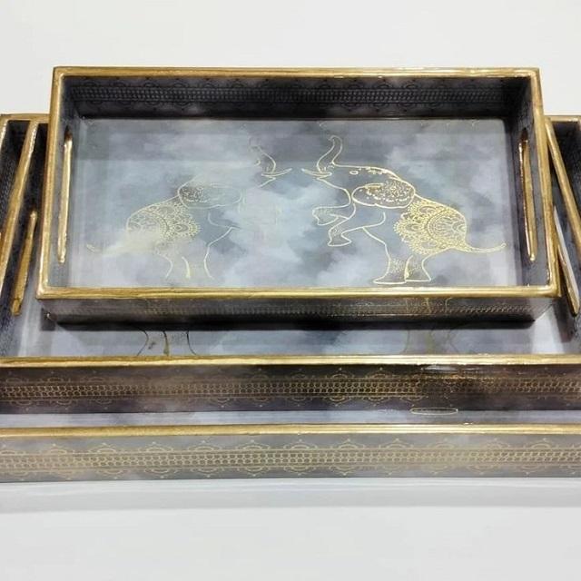 Ensemble de plateaux gigognes en matériaux écologiques, émaillés, imprimés et personnalisés pour la décoration intérieure, le petit-déjeuner, le Ramadan, l'Aïd et les cadeaux de Noël au meilleur prix