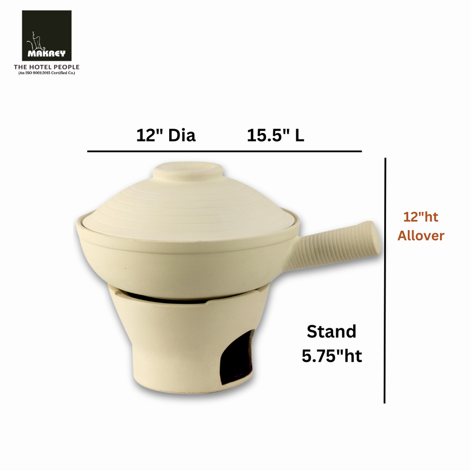 MAKREY Plat de service en céramique de style éco-responsable de 3,5 litres avec poignée, finition en argile naturelle, pour buffet, restaurant et hôtellerie