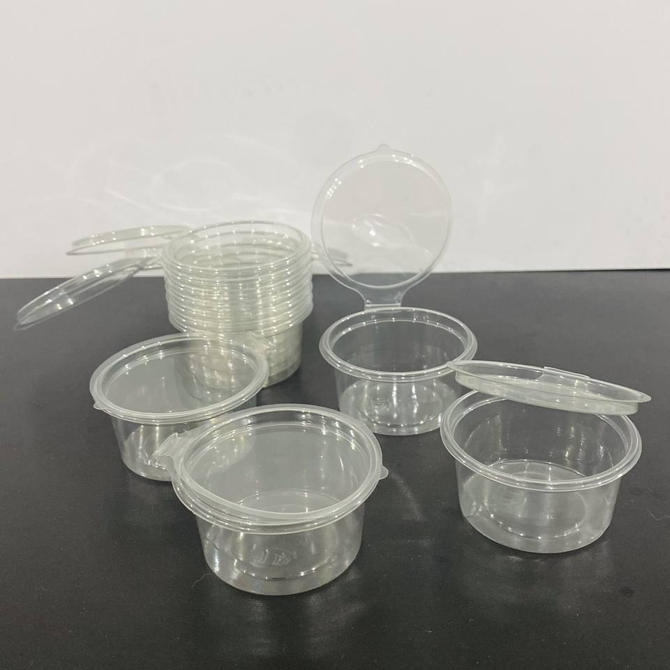 Eco friendly 2025 Manufacturer PET Plastic Sauce Cups 2oz 60ml Disposable to Go Sauce Container with Hinged Lid Low Price