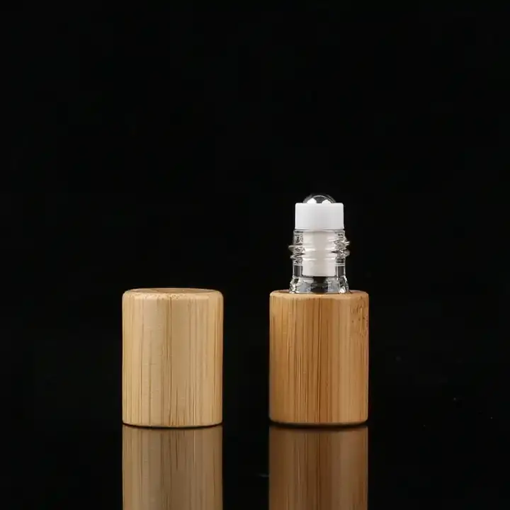 Flacon à bille en verre de bambou vide, imprimé à l'écran, écologique, 3 ml, 5 ml, 10 ml, pour huile essentielle, parfum, fragrance
