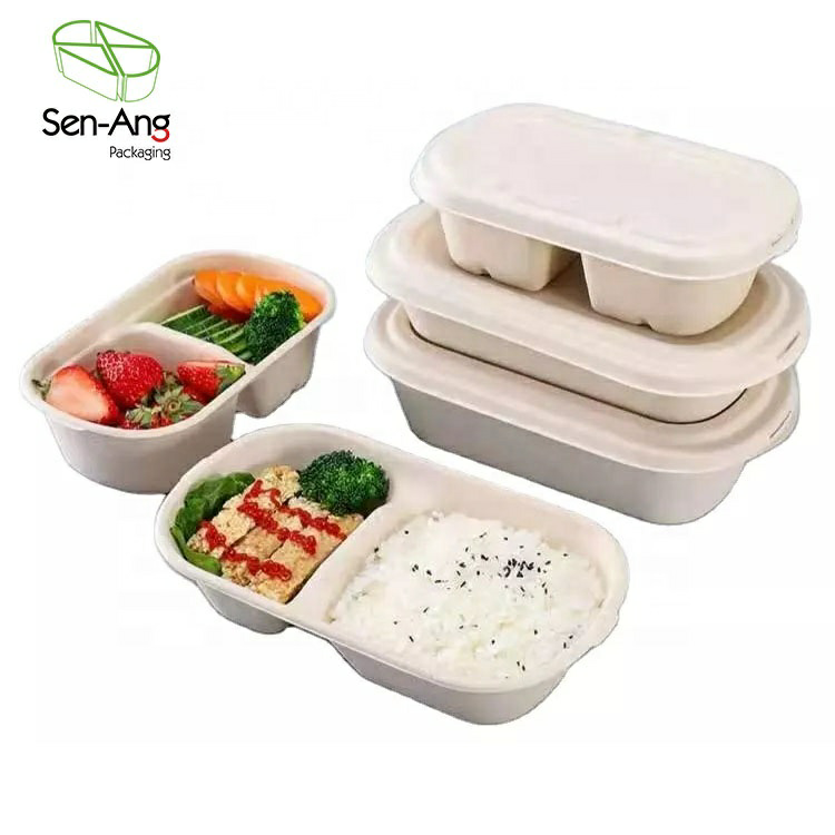 Eco-friendly 8'' White Disposable Lunch Box Sugarcane Pulp Bagasse Rigid Pet Boxes for Food Custom Food Potato Chips Canned Food