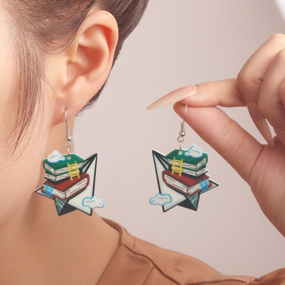 Boucles d'oreilles en acrylique écologiques-Décorations d'oreille en forme de livre d'avion en papier de saison d'ouverture d'école de style européen et américain