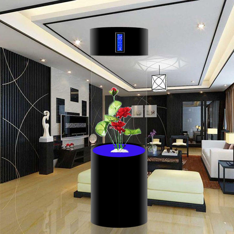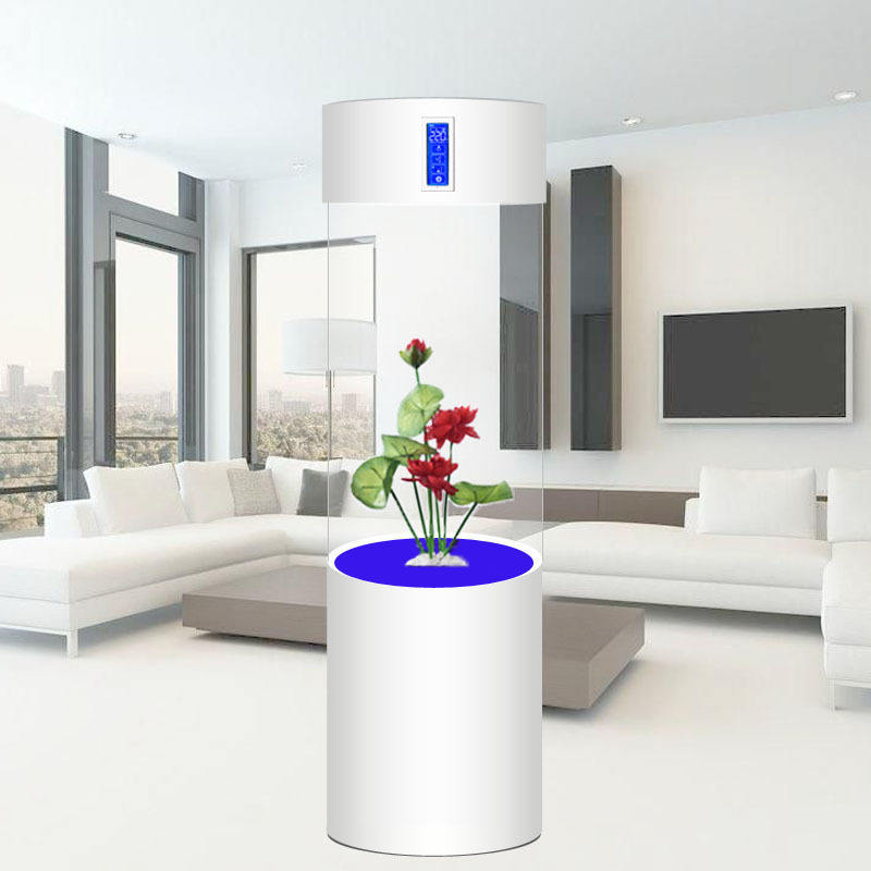 Aquarium de salon domestique cylindrique sur pied avec filtre supérieur en acrylique écologique