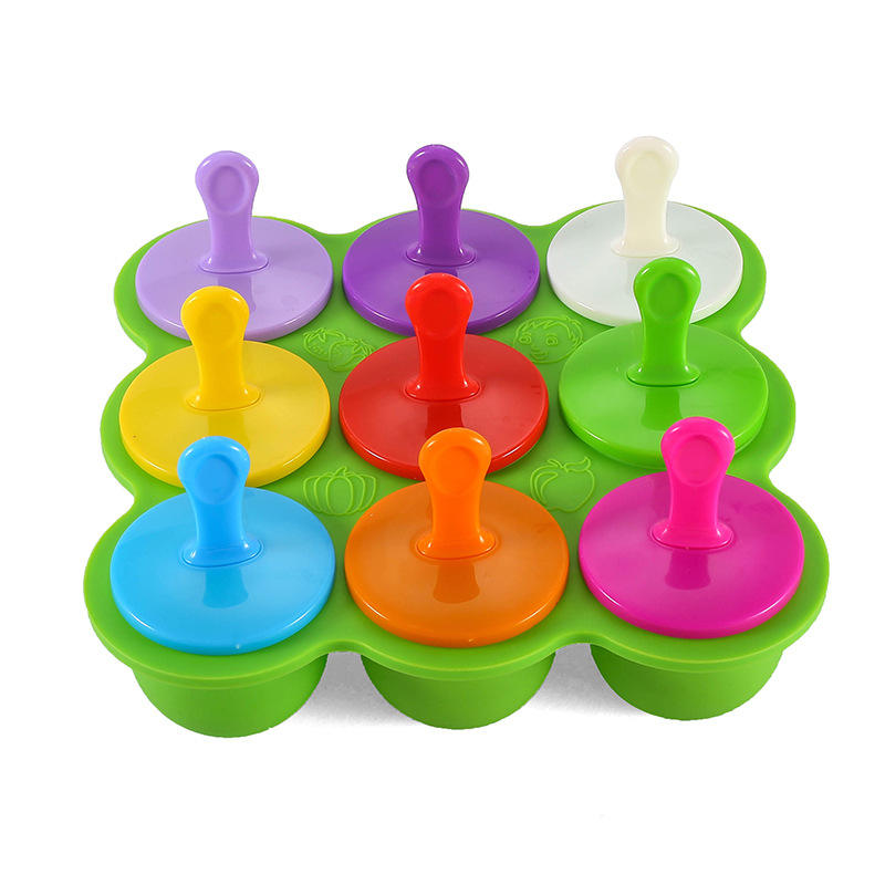 Ensemble de Récipients Ronds en Silicone Écologique et sans BPA pour Aliments Bébé, Moule à Glaçons en Silicone avec Bâtonnets pour Repas Enfants