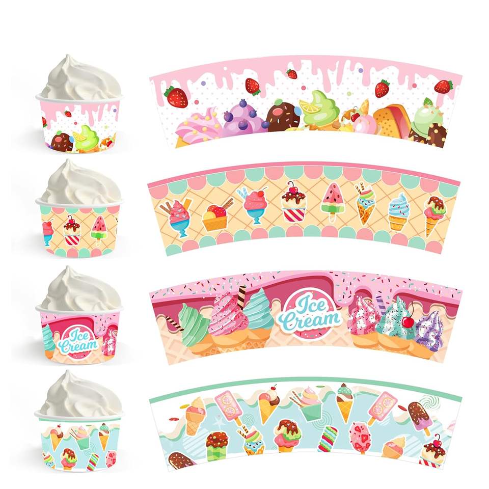 Cuve en papier de crème glacée biodégradable écologique avec couvercle, tasses à dessert en papier, bacs à salade de yaourt à crème glacée en papier