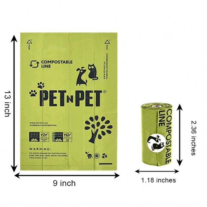 Sacs pour animaux de compagnie biodégradables écologiques, sacs à déjections canines verts en amidon de maïs avec logo personnalisé