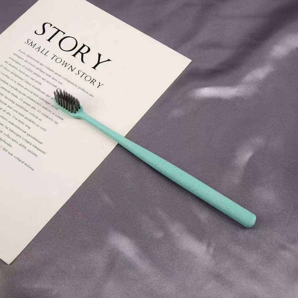 Brosses à dents écologiques noires mates biodégradables jetables en nylon souple avec manche en PP pour usage domestique et voyage, nettoyage de la langue, vertes