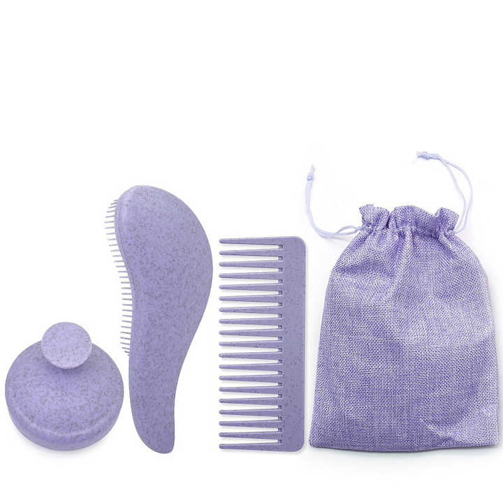 Écologique Pas Cher Prix 3Pcs Ensemble Paille De Blé Cheveux Cuir Chevelu Massage Démêlant Peigne Marque Privée Pochette Beauté Produit De Soins Personnels
