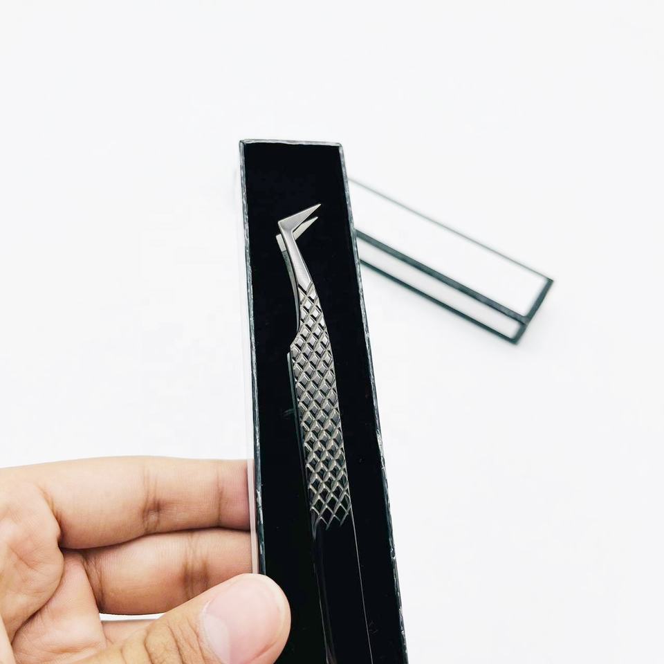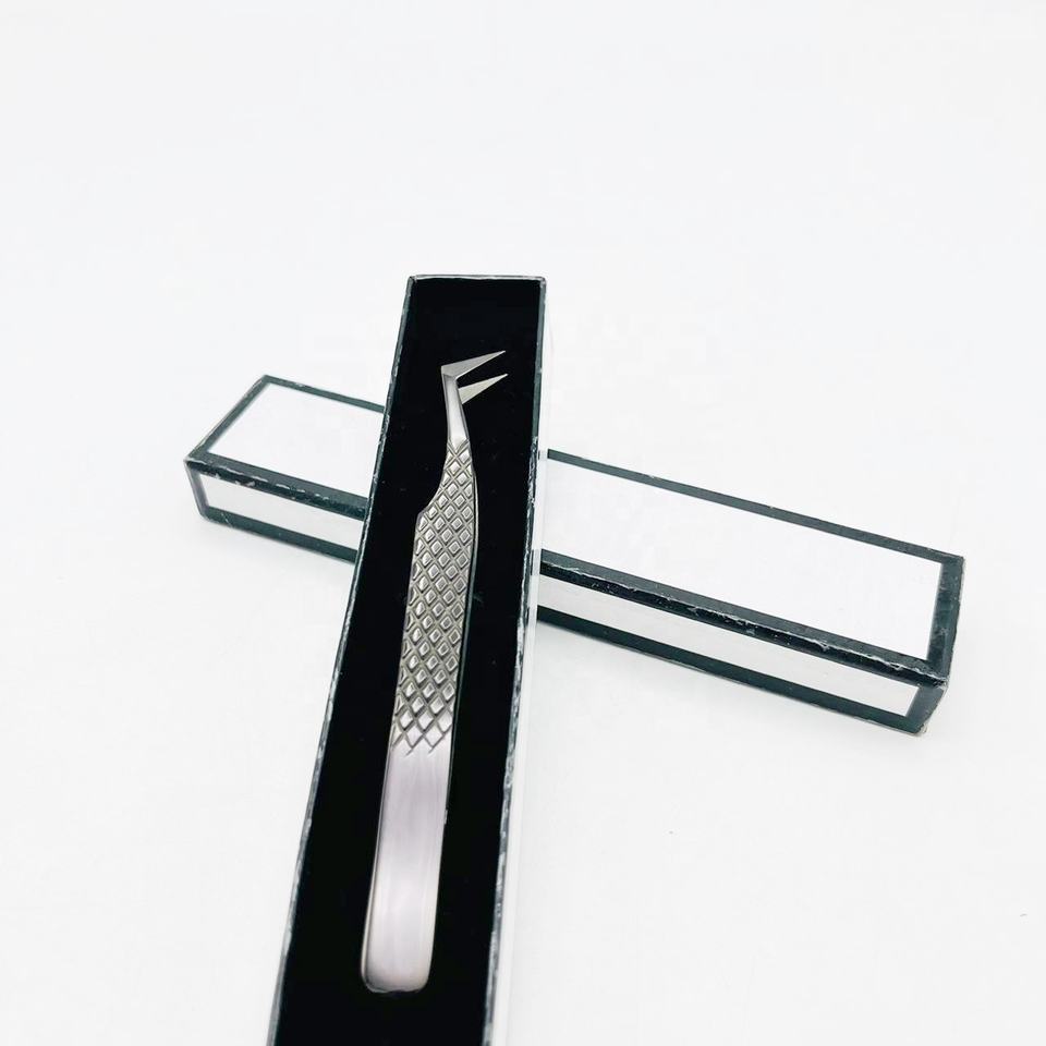 Pince à épiler écologique à pointe en fibre pour extensions de cils, en acier inoxydable, avec prise en main améliorée, pour cils volume russe, soins personnels