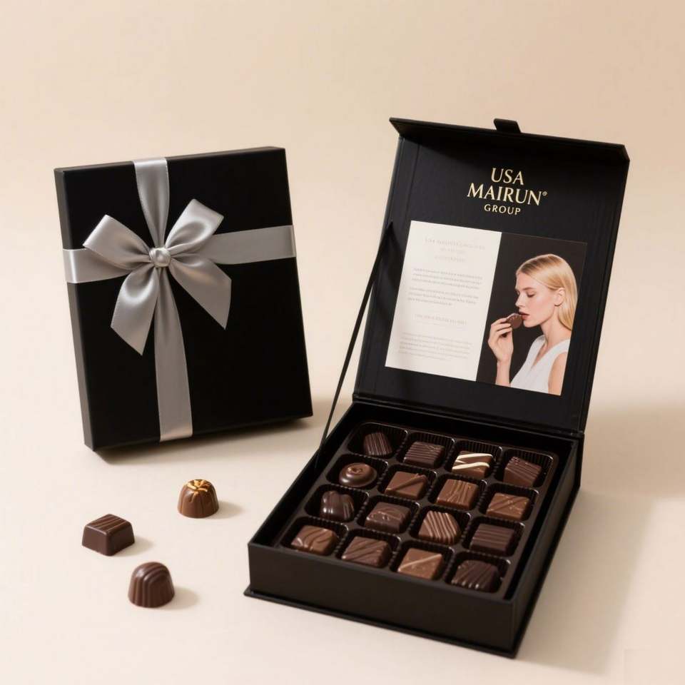 Truffle Gift Rigid Paper Magnetic Closure Chocolate Box with Ribbon