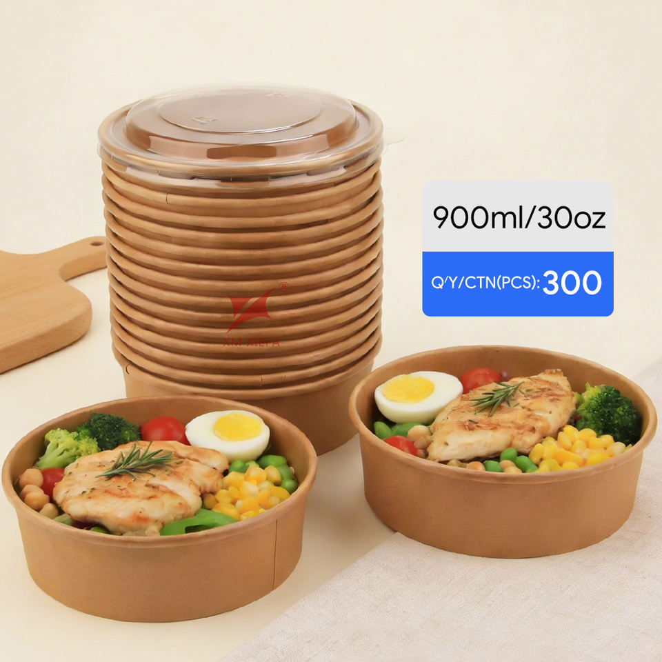 Bols à salade ronds jetables en papier kraft de style moderne, de qualité alimentaire, écologiques, avec logo personnalisé de la marque XIEFA, pour l'emballage alimentaire