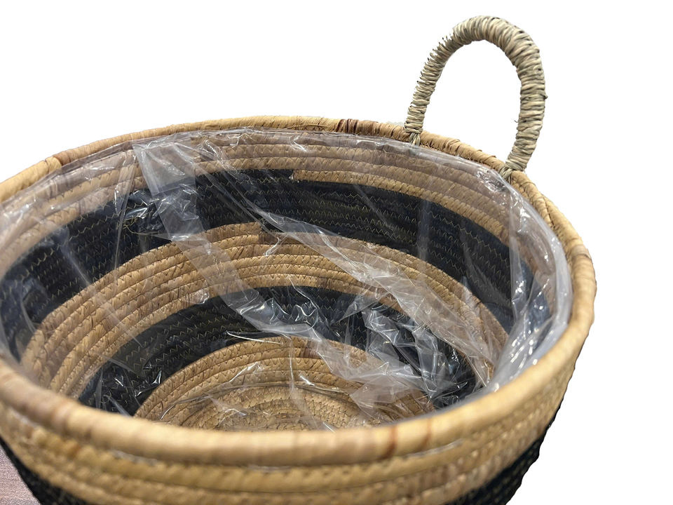 Panier de rangement rond en jonc de mer naturel, style élégant, tressé à la main avec poignées, pour la lessive, vente en gros, fabricant vietnamien