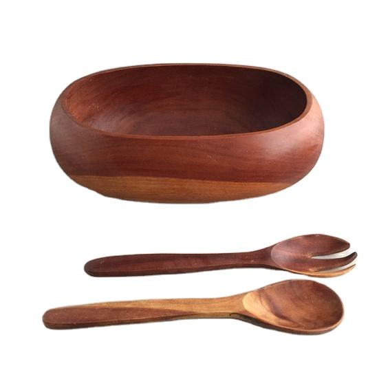 Bol à salade rond en bois d'acacia épais de haute qualité, écologique, avec des ensembles de plats et d'assiettes, peint à la main pour les fêtes
