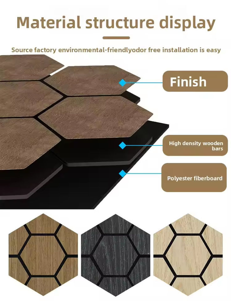 Panneaux acoustiques hexagonaux en fibre de polyester MD écologiques pour la décoration intérieure moderne, insonorisés pour une utilisation au bureau