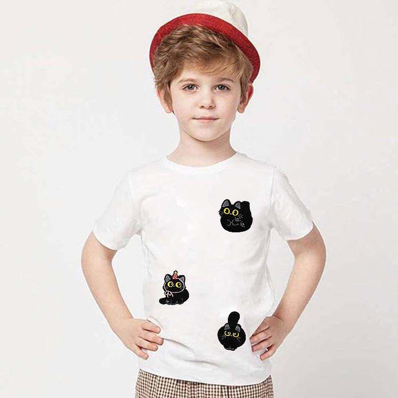 Patch brodé thermocollant écologique Chat Noir Stupid Bandage Kitten pour la décoration de vêtements et de sacs