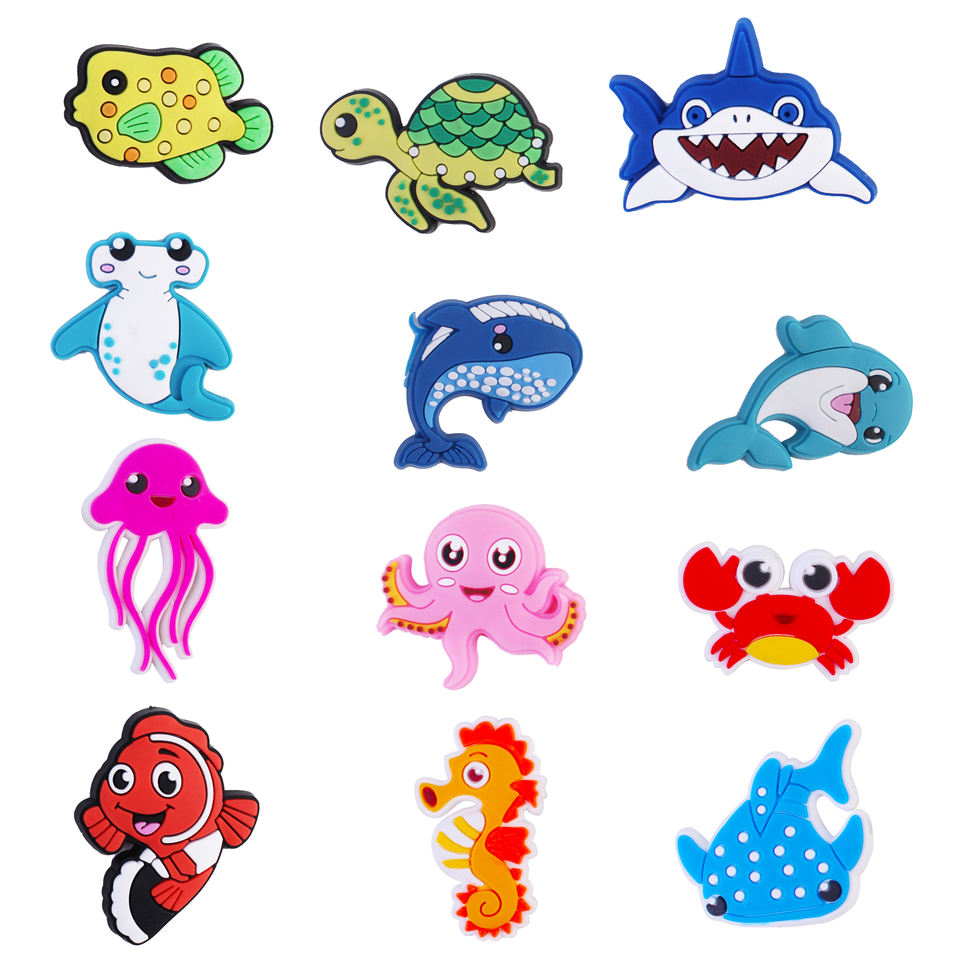 Breloques de chaussures en PVC écologiques en forme d'animaux marins, personnalisables en forme et logo, breloques de poisson, décoration, couleur personnalisée pour hommes, femmes, fêtes
