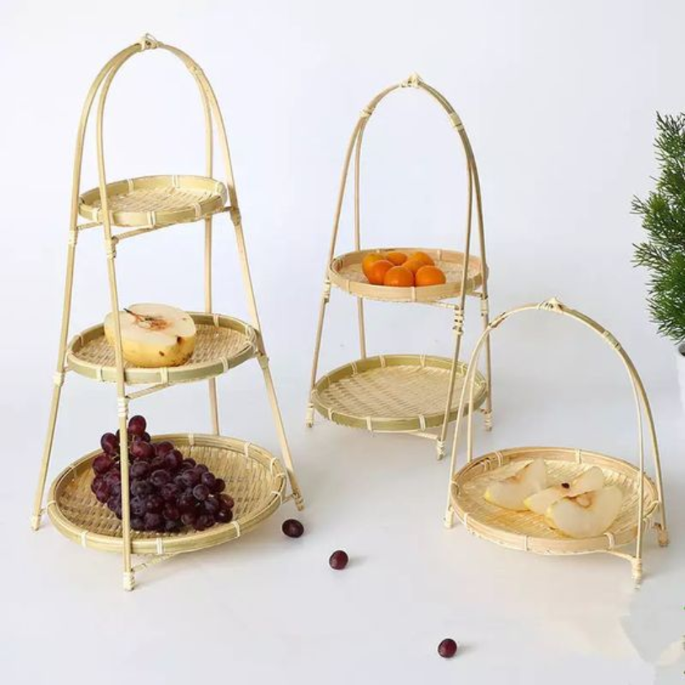 Plateau de nourriture en bambou tissé plateau rond panier plateau en boisNom du produit
