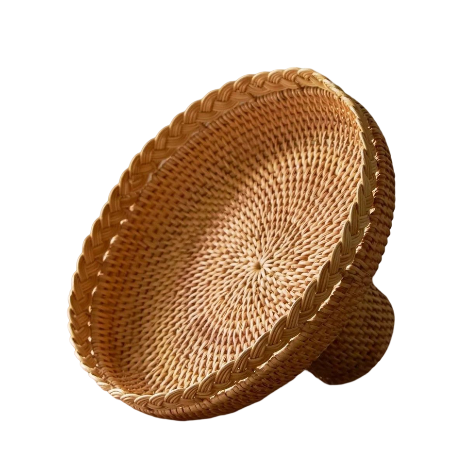 Support à gâteau en rotin naturel écologique, plateau de service en rotin en osier Boho, plateau en rotin tissé à la main pour l'affichage des aliments et la décoration de mariage