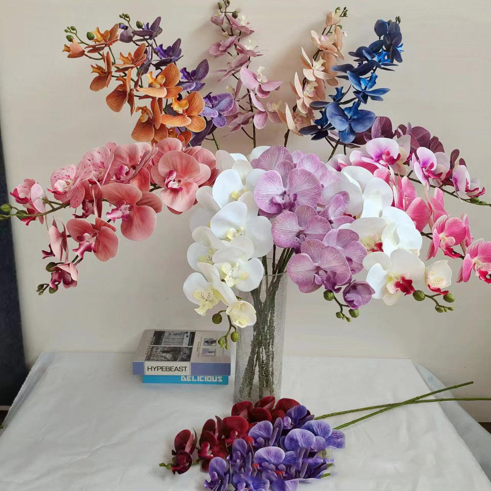 Fleurs décoratives en latex naturel écologique, aspect réaliste, grande taille, orchidée Phalaenopsis, tige en soie en vrac