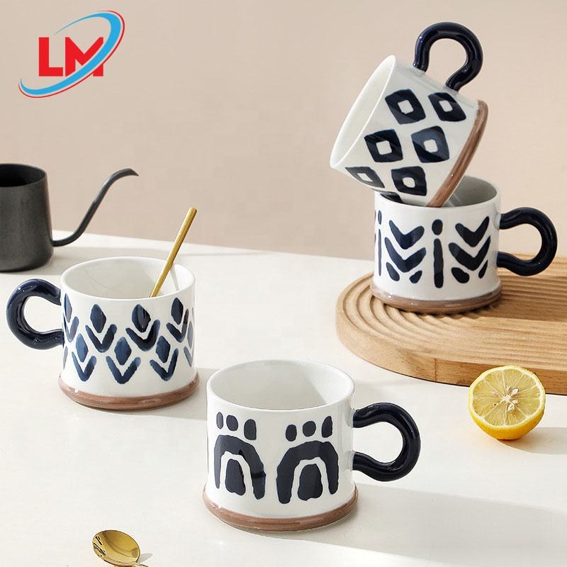 Eco-friendly Nordic Underglaze Color Hand-painted Ceramic Cup Large Capacity Food Safety Mug