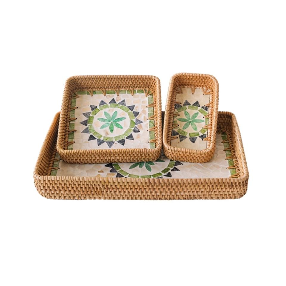 Product Name:Rattan Fruit Tray 3 Pcs Rectangular Multi-Purpose Serving Tray