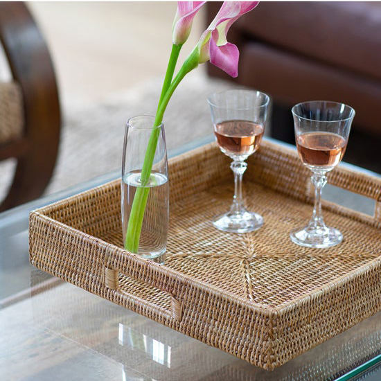 Plateau panier écologique carré en rotin naturel personnalisable pour le service du café et des aliments et le stockage décoratif