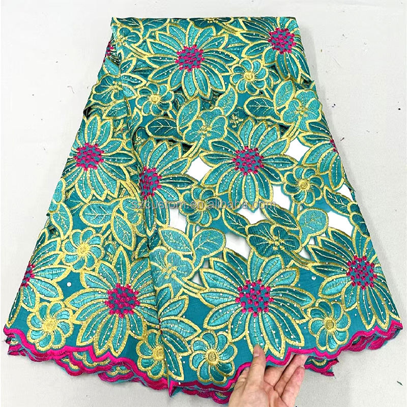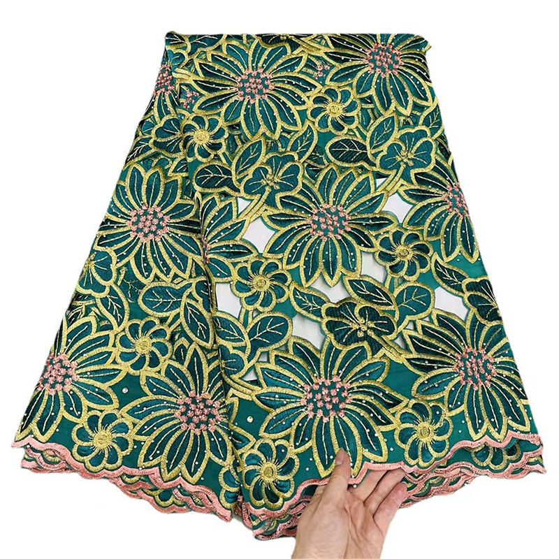 Fil écologique coton suisse Filtex tissu de dentelle polonaise broderie vert émeraude