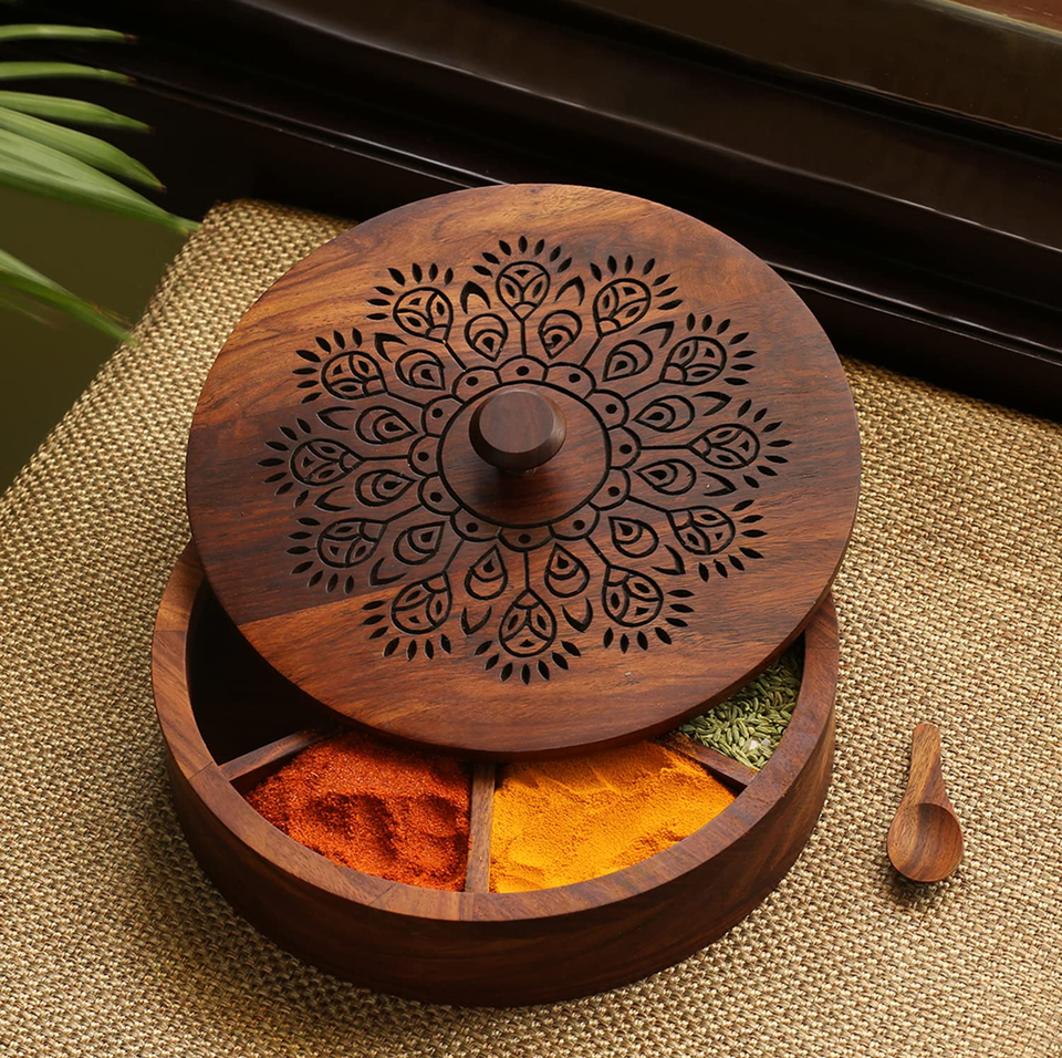 Boîte à épices en bois écologique personnalisée, style antique, avec compartiments, pour la présentation et le rangement des épices