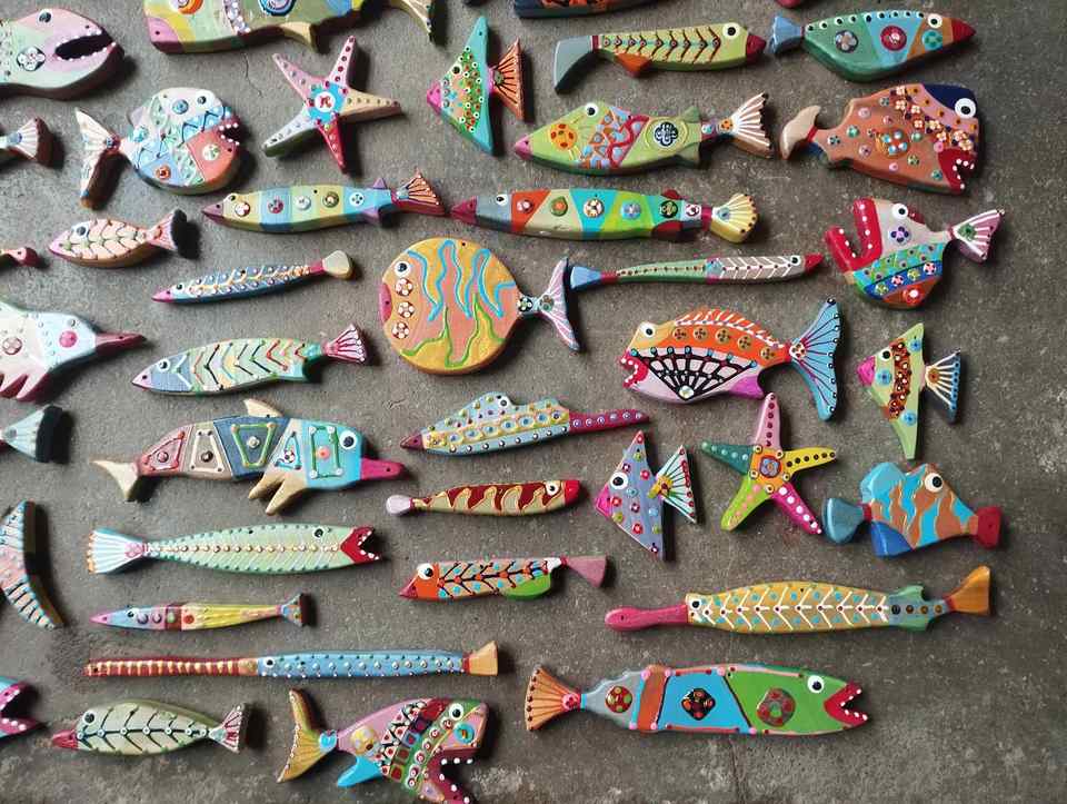 Eco-friendly wooden fish ornament, handcrafted with care to create a unique decoration symbolizing harmony and the ocean.