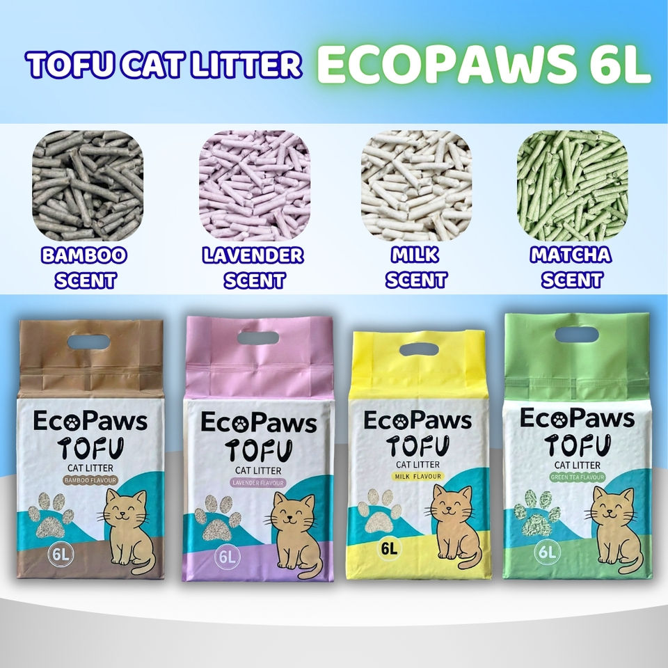 Litière pour chat EcoPaw absorbante, biodégradable, à base de tofu de soja, jetable aux toilettes, sans poussière, à agglomération rapide, contrôle des odeurs, écologique, 6L, export