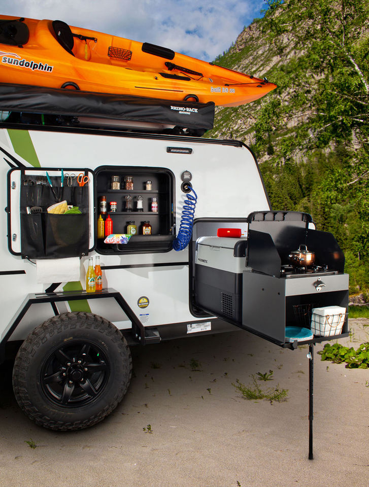 Ecocampor Petite caravane tout-terrain, caravane de voyage, caravane, remorque pour véhicules tout-terrain, camping, durable, fibre de verre, aluminium