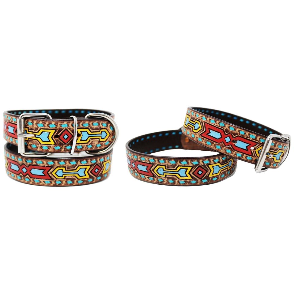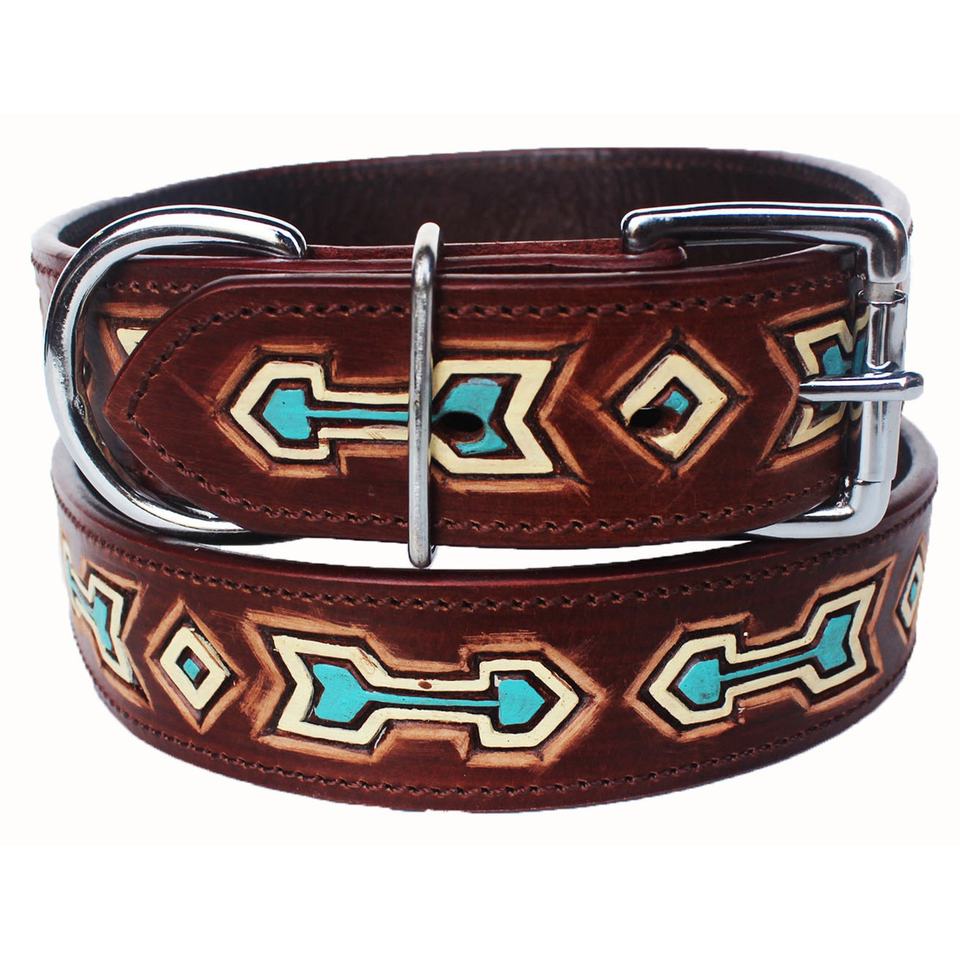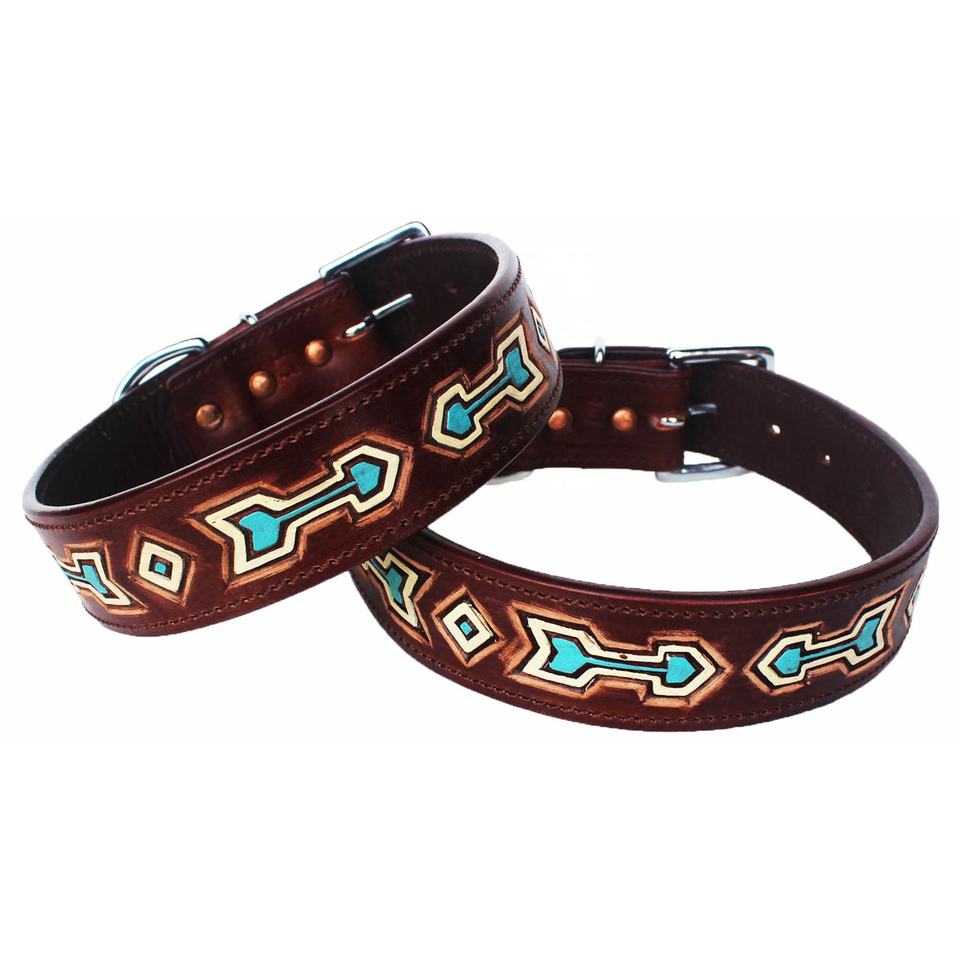 Collier de chien rembourré souple en cuir de vache écologique avec design peint à la main et outillage Meilleur grossiste indien par Rodeo International